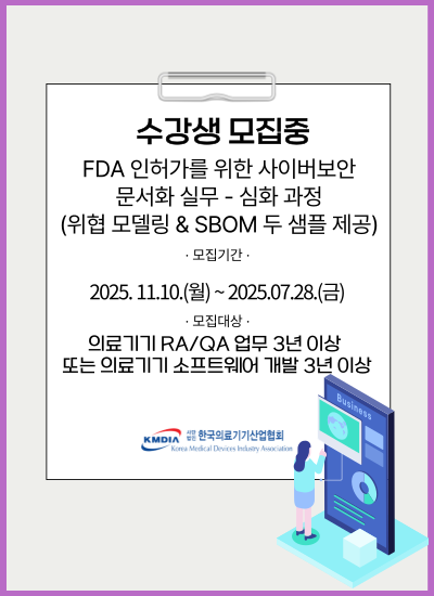 [1차] FDA 인허가를 위한 사이버보안 문서화 실무-심화 과정(위협 모델링&SBOM 두 샘플 제공)